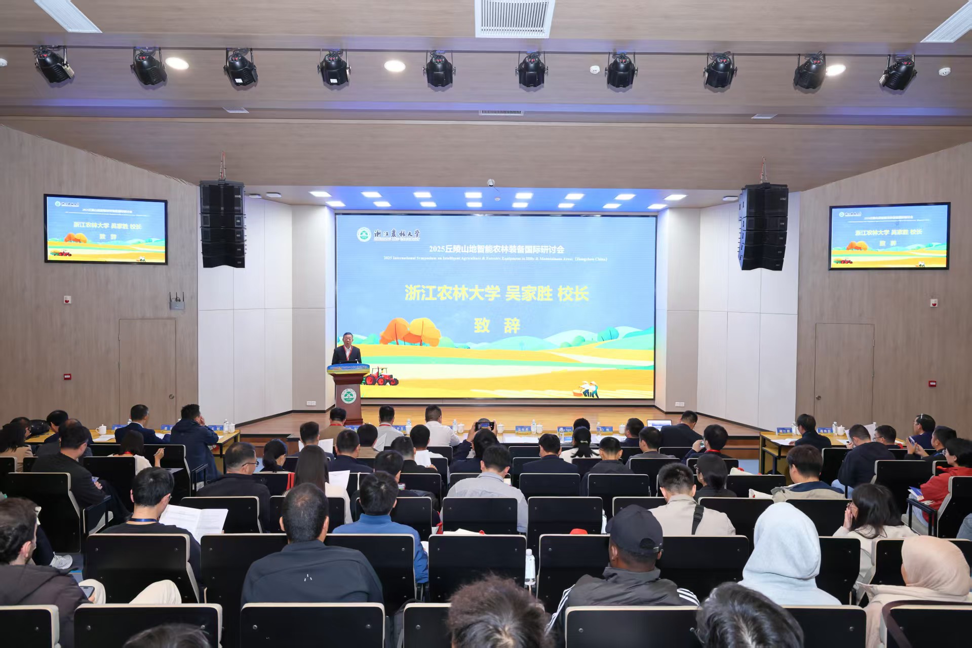 吴家胜对与会专家学者的到来表示欢迎,并介绍了学校的建设发展情况和办学特色。他指出,丘陵山地的自然条件复杂、基础设施薄弱、农田细碎分散,农林机械“通行难、下田难、作业难”的问题长期存在。当前,新一轮科技革命和产业变革加速演进,智能化正成为推动现代农林业发展的核心引擎。他希望与会专家携手努力,将本次会议的智慧碰撞,转化为未来扎根大地的先进装备与实用技术,共同为全球丘陵山地农林业的高质量与可持续发展贡献力量。
