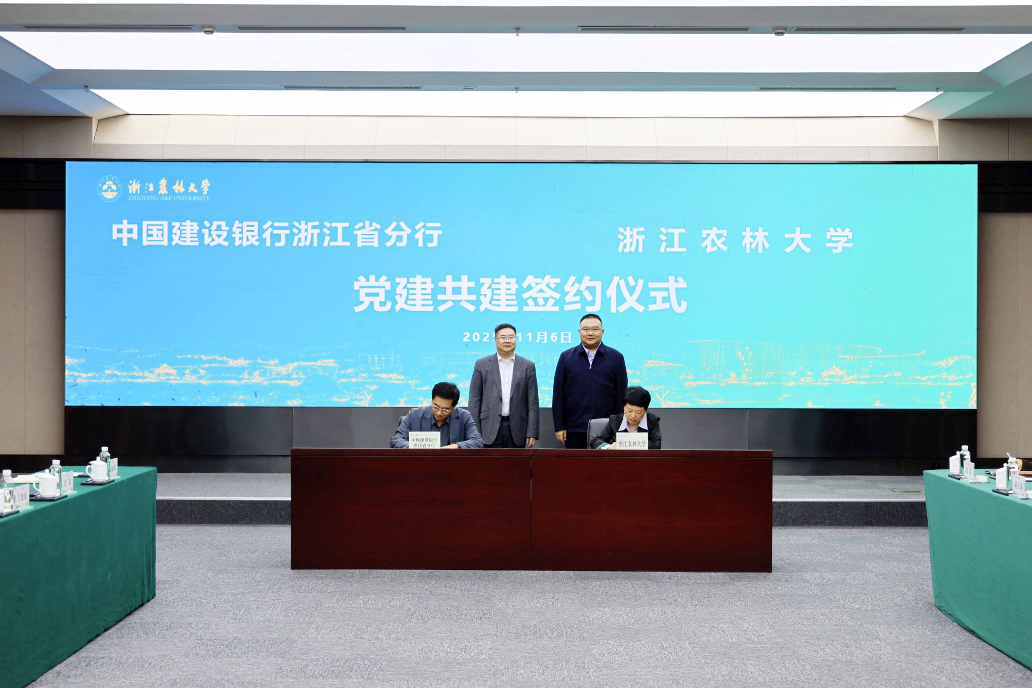 中国建设银行浙江省分行党委书记、行长张伟煜,党委委员、副行长郑浩,党委委员、副行长叶进;我校党委书记朱斌,党委副书记施美红出席签约仪式。我校党委委员、副校长杨圆华主持仪式。