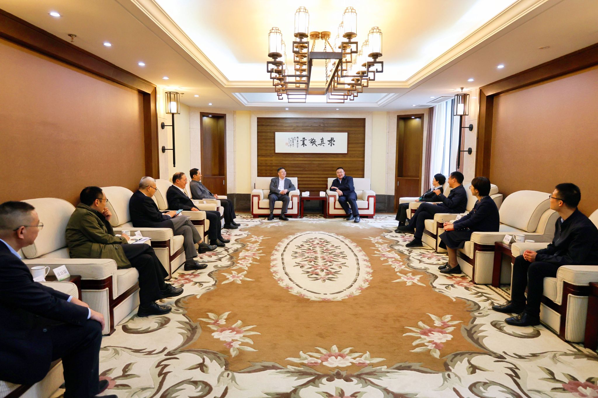 朱斌对张伟煜一行的到来表示感谢。他指出,银校合作不是单向支持,而是双向奔赴、协同发展。他希望双方要采用“年初定目标、年中抓推进、年底做总结”的模式,把合作内容一项项变成具体项目,一件件落到实处;要在智慧校园、绿色金融、人才培养、科技成果转化等方面进一步加强合作,探索新的模式,开辟新的赛道;要相互支持、彼此成就,共同探索金融助力乡村振兴的有效路径,让合作成果更好地服务国家战略与地方需求,打造银校合作的典范和标杆。