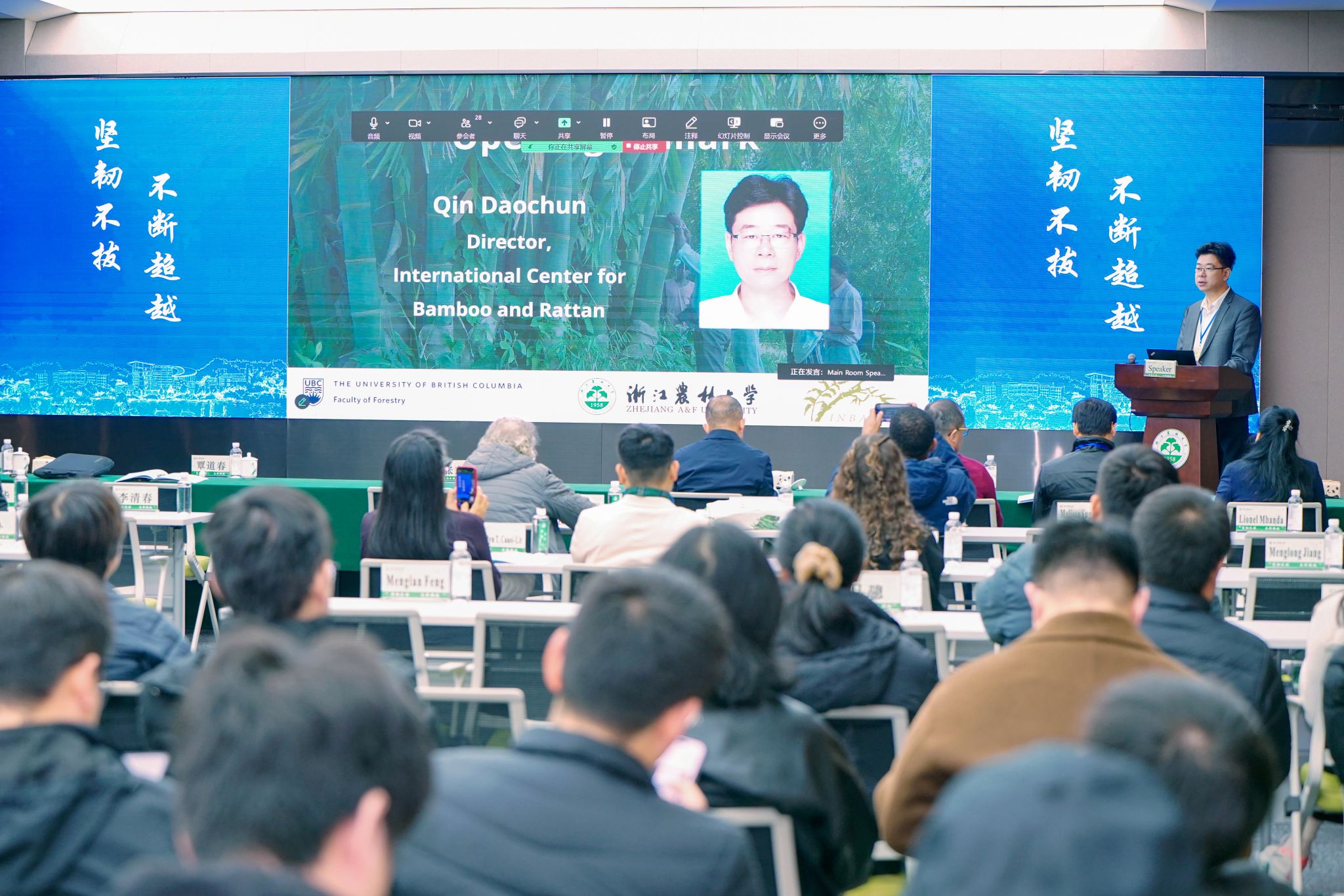 Rob Kozak热情洋溢地欢迎青年科学家参与。他指出AI、遥感、材料创新和生态建模等工具,将定义竹子如何助力碳汇市场、生物经济与气候行动。他鼓励青年科学家们积极提问、分享研究、建立合作,共同推动竹子应用的全球发展,以应对气候变化等挑战。