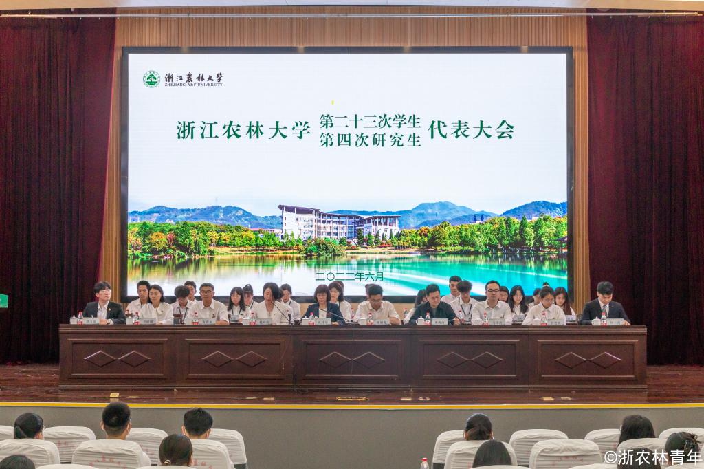 校学生会主席团成员蔡万豪代表第二十二届学生会作题为《牢记嘱托,奋力奔跑,为建设区域特色鲜明的高水平生态性研究型大学贡献浙农林大青年的青春力量》的工作报告。校研究生会主席团成员周士禹代表第三届研究生会作题为《坚定信念,锐意创新,在学校实现“双一流”建设目标的征途中汇聚浙农林大研究生的智慧能量》的工作报告。