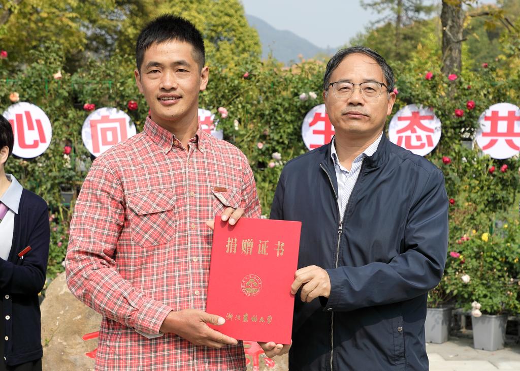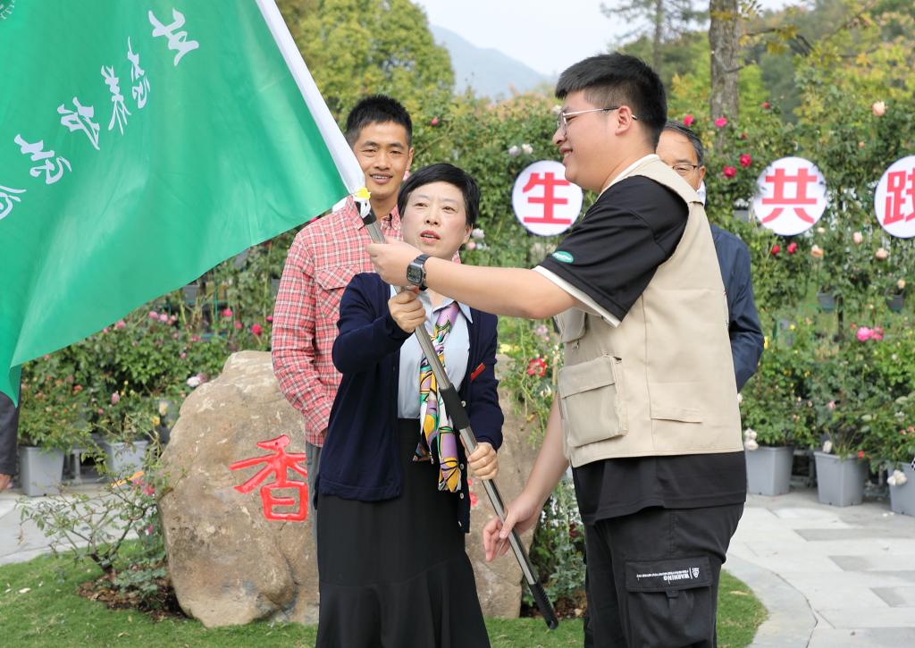施美红宣布月季园开园并为生态养护志愿者代表授旗。胡祖吉向月季园种苗捐赠人徐杰表示感谢并颁发了捐赠证书。