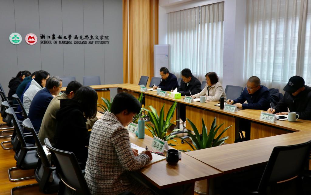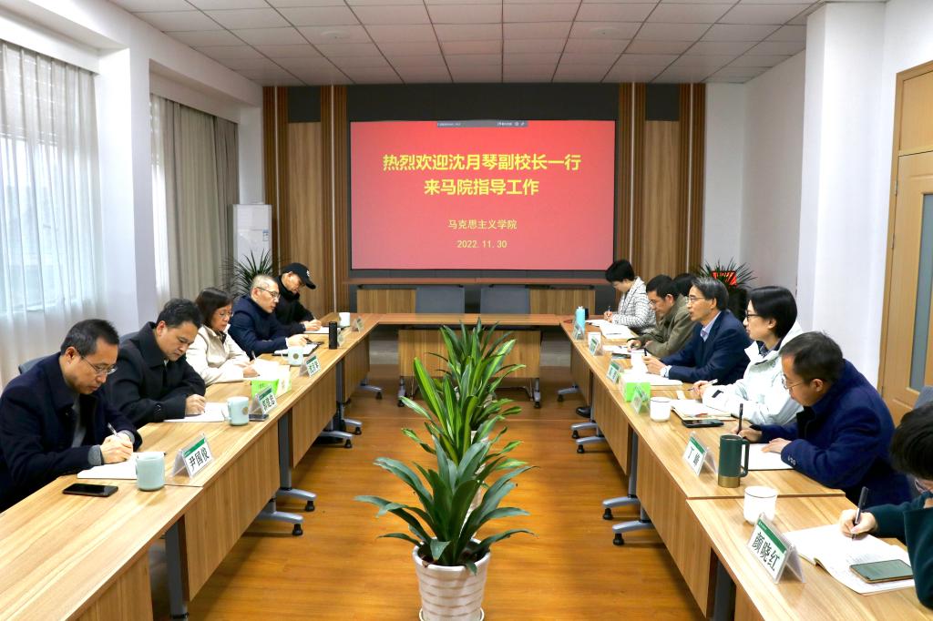 在听取学院工作汇报的基础上,沈月琴提出了三点要求:一是校院联动,加强人才引进。要通过多措并举,积极主动引进数量充足、质量保证、结构合理的学科骨干和优秀博士。二是练好内功,营造良好氛围。牢牢守好思政课堂主阵地,关心教师工作、生活和发展,营造良好的学习工作发展氛围。三是开放交流,提升教师水平。进一步聚焦研究方向,加强教师对外交流,依托学校研究平台的支持保障和有效激励,强化组织化建设,不断扩大学院影响力,扎实推进马克思主义学院高质量内涵式发展。