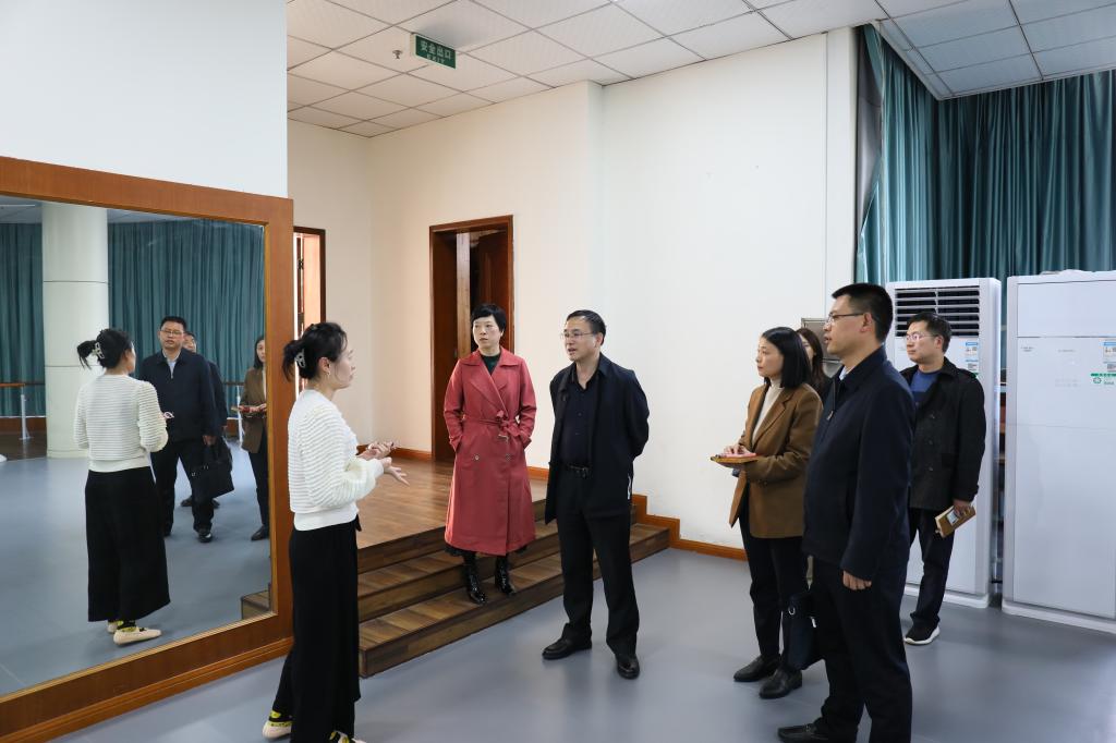 施美红对吴波一行表示欢迎,简要介绍了学校基本建设情况,重点介绍了校园文化特色、大学生艺术团组成、学生社团活动以及活动中心建设、宿舍文化建设等情况。