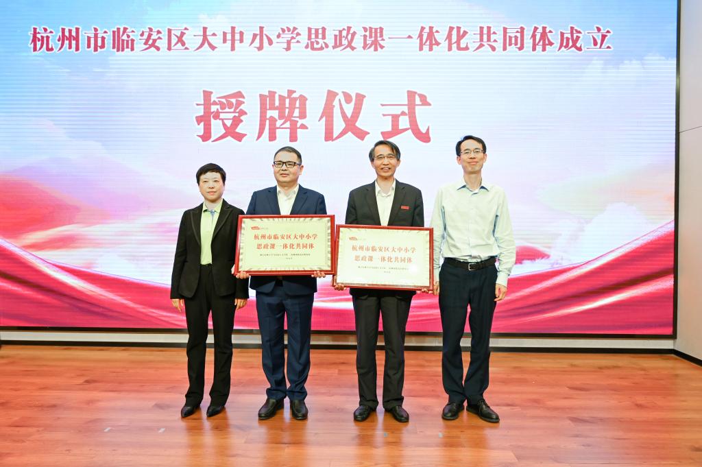 双方举行签约授牌仪式,并就推进大中小学思政课一体化建设主题进行了深入交流。马克思主义学院与临安区教育局将开展紧密型共同体建设,重点聚焦思政课教师队伍专业化水平提升、中小学思政课程和课程思政、学术论坛和课题项目合作。通过高校的辐射带动效应,充分发挥优质教育资源的示范引领作用,形成可复制可推广的教育共同体建设模式,提升区域思政教育水平建设,落实立德树人根本任务。