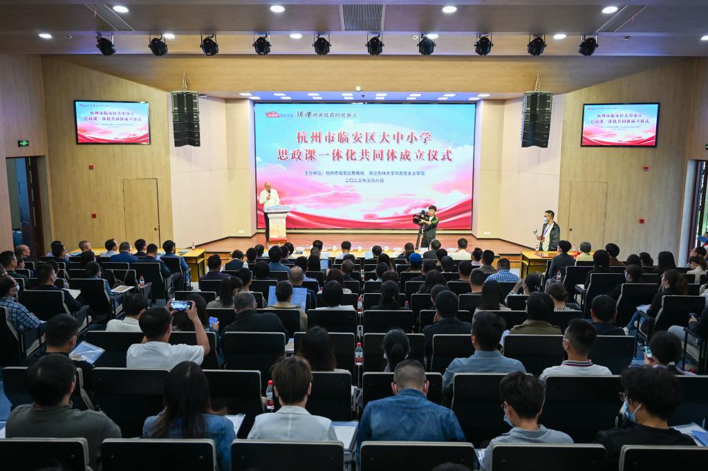 5月8日,杭州市临安区大中小学思政课一体化共同体成立仪式在我校举行。校党委副书记施美红,临安区委常委、宣传部长孙超,教育局党委书记、局长褚凯军,马克思主义学院、校新闻中心等单位负责人,“天目少年思政工程”成员单位、临安区中小学和我校师生代表等170余人参加本次活动。