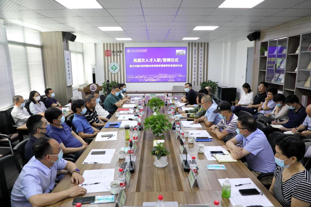 6月3日,高层次人才入职/聘任仪式暨乡村振兴研究院与农林经济管理学科发展研讨会举行。国务院参事何秀荣,国家“万人计划”哲学社会科学领军人才张俊飚及其团队成员华中农业大学经济管理学院副院长颜廷武、罗小锋,中国地质大学经济管理学院副院长程胜,中南民族大学经济学院院长李波等,国家“百千万人才工程”入选者刘璨,北京林业大学发展规划处副处长程宝栋,我校副校长、浙江省乡村振兴研究院院长沈月琴,人事处、文科处负责人和经管学院班子成员、浙江省乡村振兴研究院和农林经济管理学科代表等共40余人参加会议。