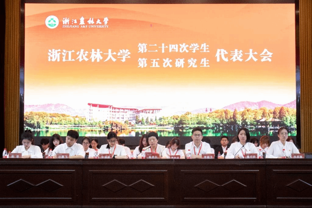 翁馨代表校学生会作题为《牢记青春使命勇担时代重任发挥桥梁作用奋力谱写学生会工作新篇章》的工作报告。邢思懿代表校研究生会作题为《坚定信念跟党走砥砺奋进谱新篇为实现学校“双一流”建设目标凝聚浙农林大研究生的智慧力量》的工作报告。