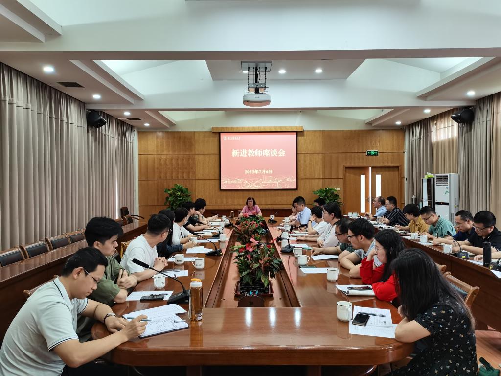 7月6日上午,学校召开新进教师座谈会。副校长沈月琴,研究生院、人事处、教务处、科技处、文科处、教师发展中心、设备处、计财处、公管处、图书馆等单位负责人,以及20余名新进教师参加了座谈会。