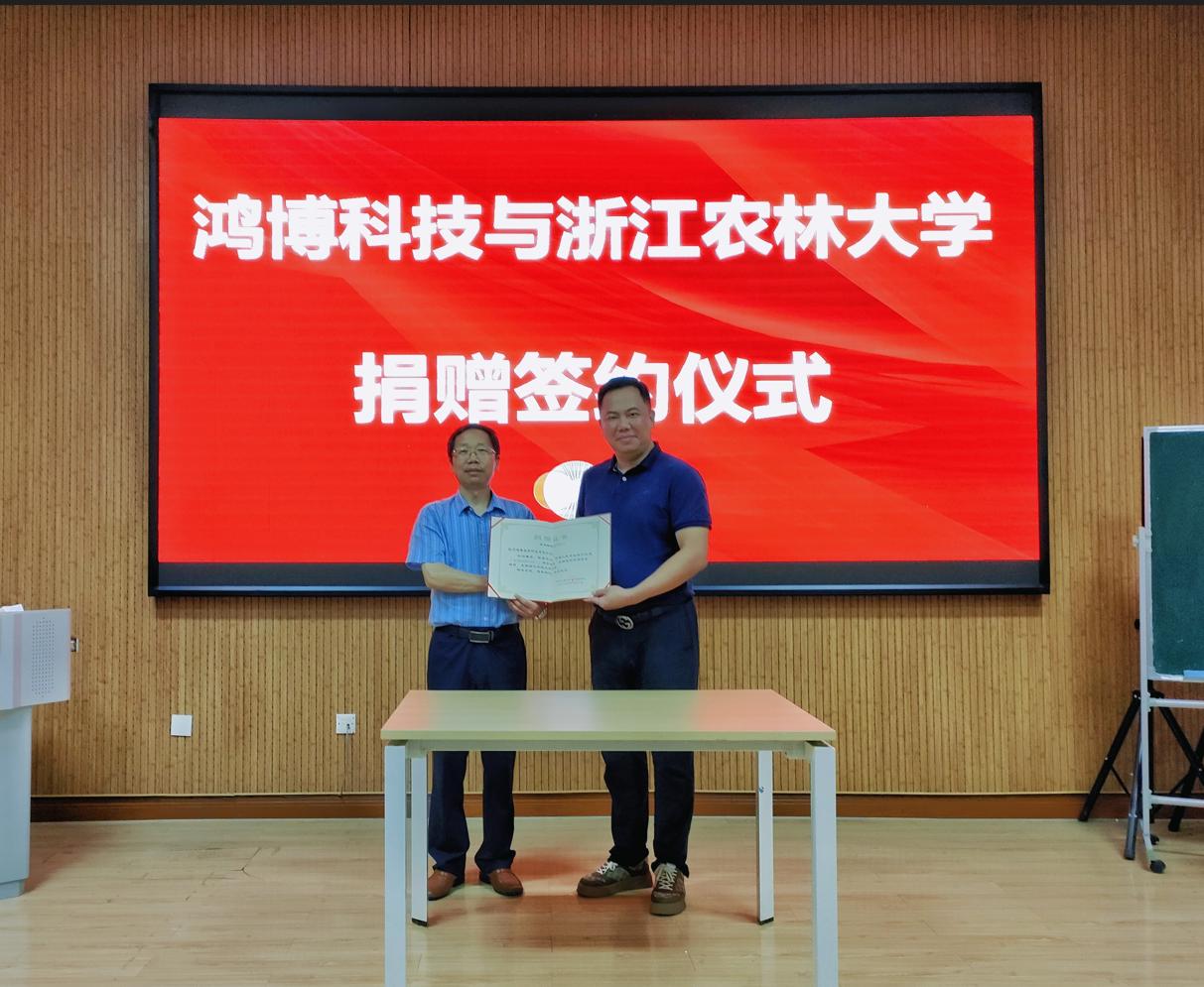 会上,冯尚申向汪恩锋校友颁发了捐赠证书,见证了离退休办与杭州鸿博辐照科技有限公司的签约仪式。