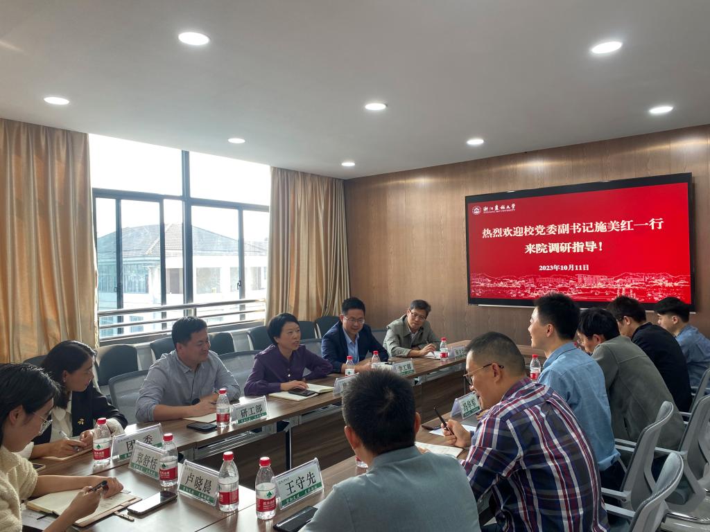 连日来,校党委副书记施美红一行先后到农学院,园艺学院,食健学院,环资院、碳中和学院走访,重点就党建思政、学生管理等工作进行调研。