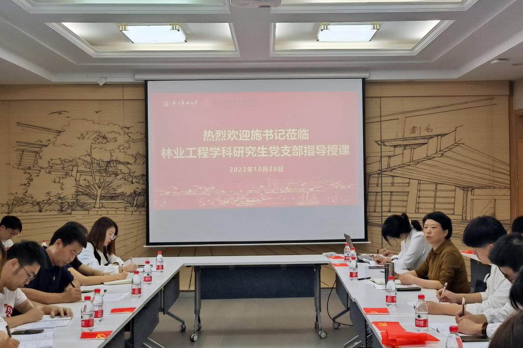 10月26日,校党委副书记施美红到国家工程中心“党员之家”走访调研林业工程学科研究生党支部,为支部党员上了“习近平总书记考察浙江重要讲话精神”的主题党课,勉励师生牢记嘱托、感恩奋进、实干争先。化材学院负责人和党支部全体成员共40余名师生参加。