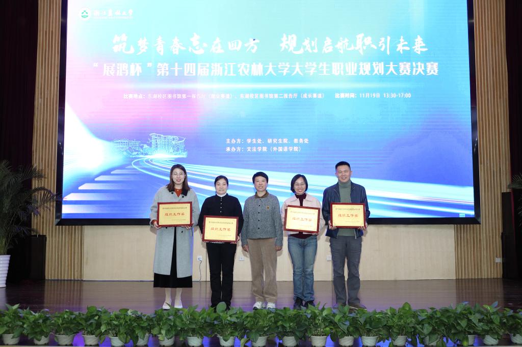 经过激烈角逐和校内外专家的评审,文法学院黄伟杰的“联通世界,语@未来——国际中文传播教师成长记”、化材学院柴浩的“减碳工程师——新时代双碳战略的先行者”、艺术学院裘佳婕的“探源与活化 传承与点睛——数字时装设计师成长记”、动科动医学院袁宽城的“‘喵医师’养成记”获成长赛道金奖;动科动医学院刘怡炜的“以梦为马,不负韶华——马兽医的养成记”、园林学院费宇峰的“职校退学,匠心笃行——迈向‘传统园林古建营造师’之旅”、环资学院赵吟吟的“将科研浸在山野深谷间”、化材学院邓文哲的“深耕板材,做产业创新升级‘护航人’”获就业赛道金奖。杨优优、李莹莹、应莺、苏小菱、曾欢、陈审声、侯蕊、谢婷婷8位教师获“优秀指导教师”称号,文法学院、化材学院、环资学院、艺术学院获组织工作奖。