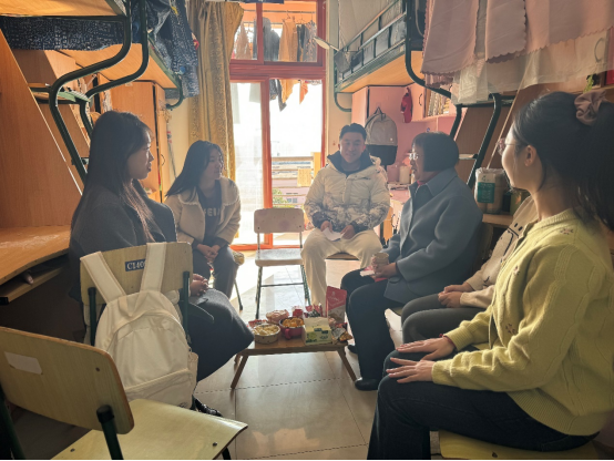 走访过程中,沈月琴与同学们进行了深入交流,询问她们的学习进度、生活情况,对学生们在日常生活中遇到的问题给予了耐心解答。她以自己的亲身经历教导同学们要明确学生身份、强化学习意识,筑牢扎实的专业基础、树立高远的学术目标,争取学有所成、学有所得。沈月琴不仅关注学生的学术发展,更关心大家生活习惯的养成,她提醒同学们要保持良好的卫生习惯,营造舒适的生活环境。沈月琴鼓励大家积极参与校园活动,丰富课余生活,加强日常锻炼,实现德智体美劳全面发展。