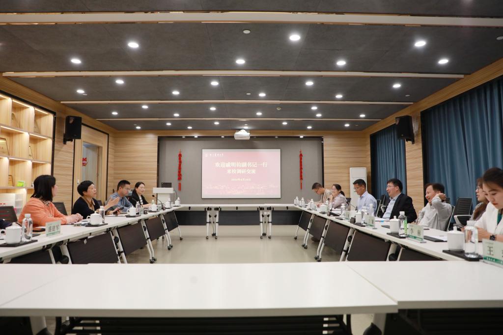 4月18日下午,杭州电子科技大学党委副书记戚明钧一行来校调研交流。校党委副书记施美红陪同调研并主持座谈会。