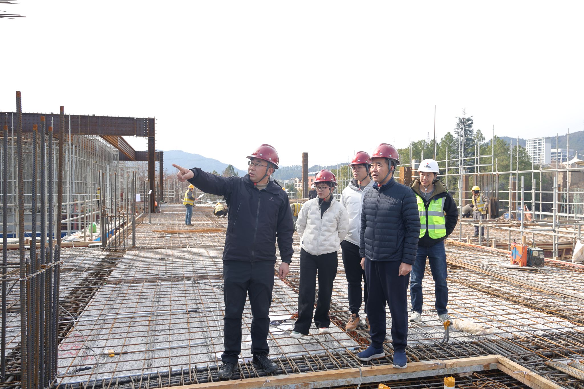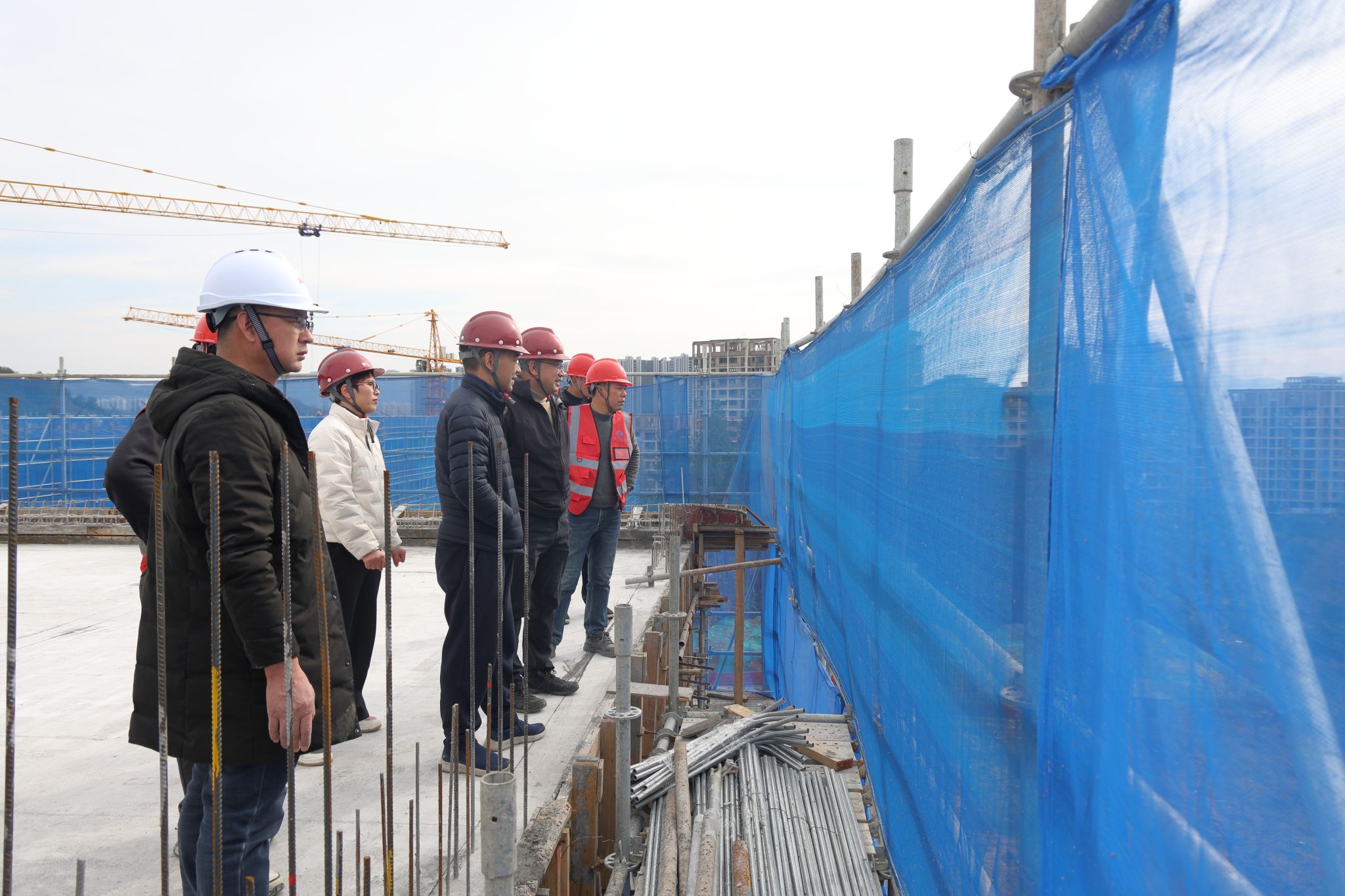 随后,杨圆华实地查看了体育中心、H 区学生宿舍项目现场施工情况。在听取参建单位负责关于项目节日值守、后续复工计划等情况汇报后,他强调,各参建单位要强化节日保障,确保薪资足额发放;全面排查安全隐患,严守安全底线;细化复工计划,确保项目高质量推进。