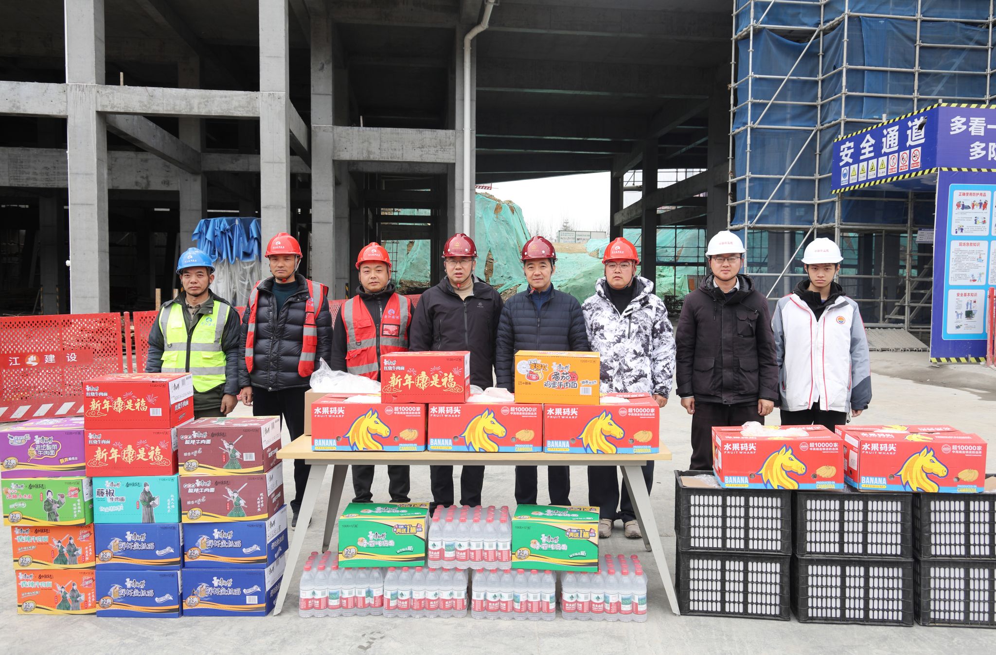 项目现场,杨圆华为一线施工工人送上慰问品与节日祝福,叮嘱大家做好安全防护、安心过节,并对大家的辛勤付出表示感谢。