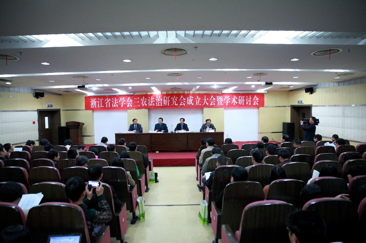 11月8日,浙江省法学会三农法治研究会成立大会暨学术报告会在我校举行。浙江省法学会专职副会长陆剑锋、浙江省人民政府参事赵兴泉、我校副校长金佩华等出席大会。来自省社会科学院法学研究所、省农业厅政策法规处、省海洋与渔业局政策法规处、省农业行政执法总队及各地市的农业行政执法部门、高等院校、各级法院等单位的专家学者80余人参加了大会。