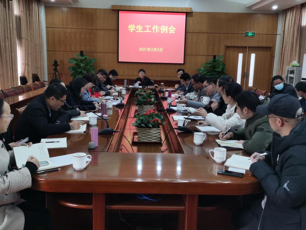 3月3日,学校召开学生工作例会,研讨新学期思想政治工作,会议由校党委副书记施美红主持。