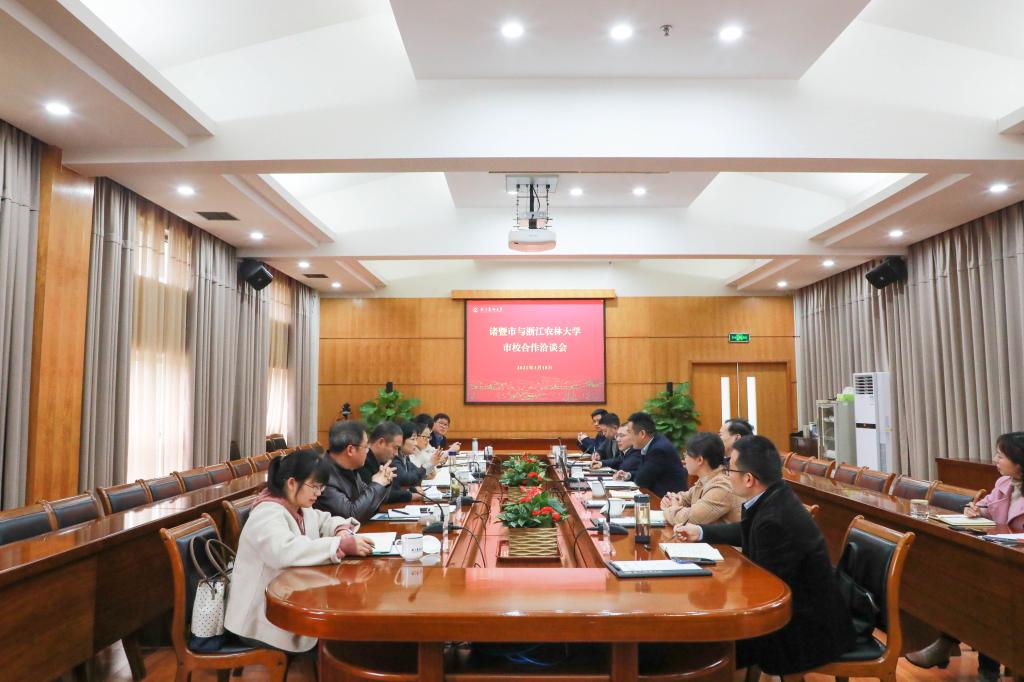 徐爱俊介绍了学校的基本情况以及“十三五”期间在学科建设、师资队伍、人才培养等方面取得的主要成就,并就学校“十四五”发展规划进行了简要说明。他指出,乡村振兴、高教强省、城西科创大走廊等战略为学校提供了重大发展机遇,在迈向高质量发展的新阶段,学校将进一步加强与诸暨的交流合作,共谋长足发展。