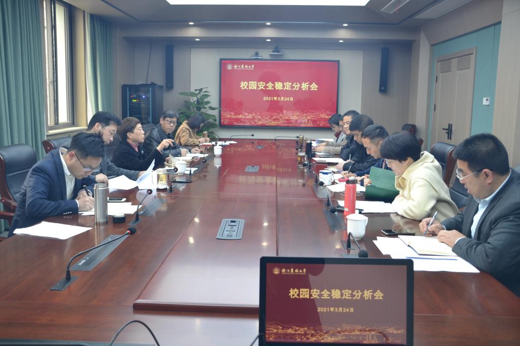 3月24日, 学校召开校园安全稳定分析会,校党委副书记施美红,校党委委员、宣传部部长倪建均出席会议,相关职能部门和后勤集团负责人参加会议。