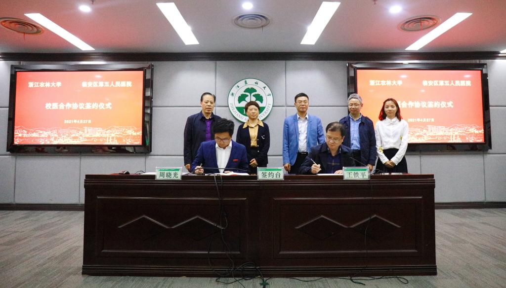 4月27日,学校与临安区第五人民医院合作签约仪式在东湖校区举行,校党委副书记施美红、学工部部长周晓光,临安区第五人民医院院长王铁平、副院长曹日芳出席,仪式由学工部相关负责人主持。