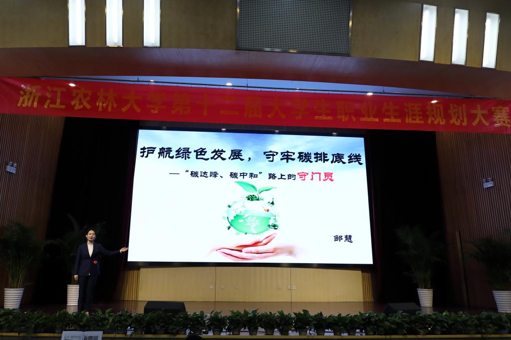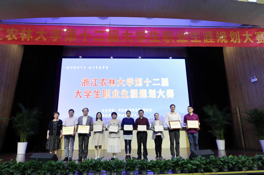 经过激烈角逐和校内外专家的评审,食品学院中药学专业刘鑫汀的“‘森’”呼吸——针对高血压人群的森林康养师”、农学院农学专业张园彬的“情系山区梦菇乡,心寄三农兴菇业——食用菌科研人员成长记”、文法学院法学专业吉彦霖的“pick up China,做洁净地球的传播官”获职业规划类特等奖,艺术学院设计学专业盛洁等的“云中百草园——开启中草药AR魔法之旅”、计算机学院计算机科学与技术专业宁景苑等的“‘品安链’—新冠疫情下冷链水产品品质安全保障者”获创新创意类特等奖。15位教师获“优秀指导教师”称号。材料学院、园林学院、经管学院、文法学院获最佳组织工作奖。