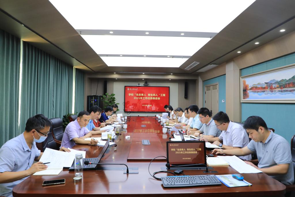 7月6日上午,学校召开“生态育人、育生态人”工程2021年工作任务推进会,通报今年工作任务进展情况,指导督促各项工作扎实推进。会议由校党委副书记、“生态育人、育生态人”工作领导小组组长施美红主持。
