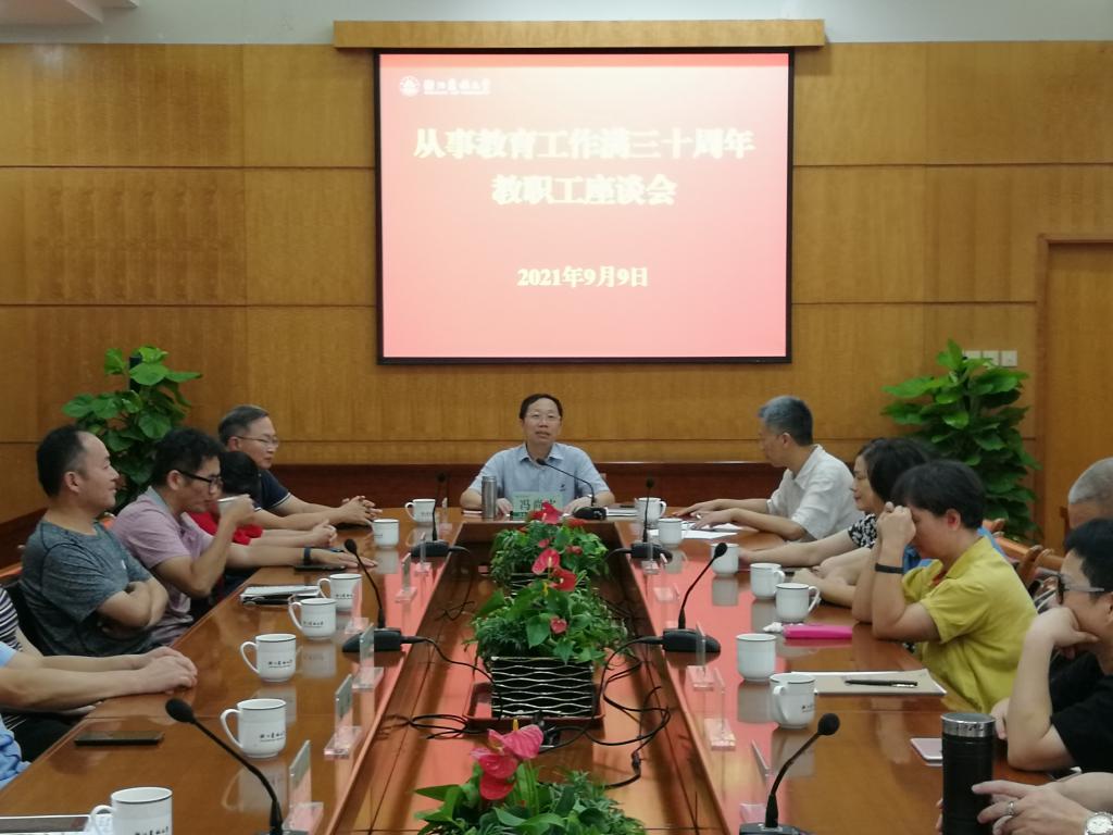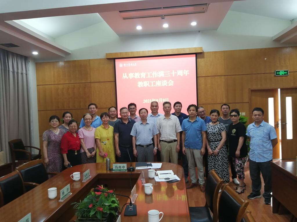 9月9日,为庆祝第37个教师节,工会组织召开从事教育工作满三十周年教职工座谈会。会议由校党委副书记冯尚申主持,17位2021年从事教育工作满三十周年的教职工参加座谈,工会相关同志参加座谈。