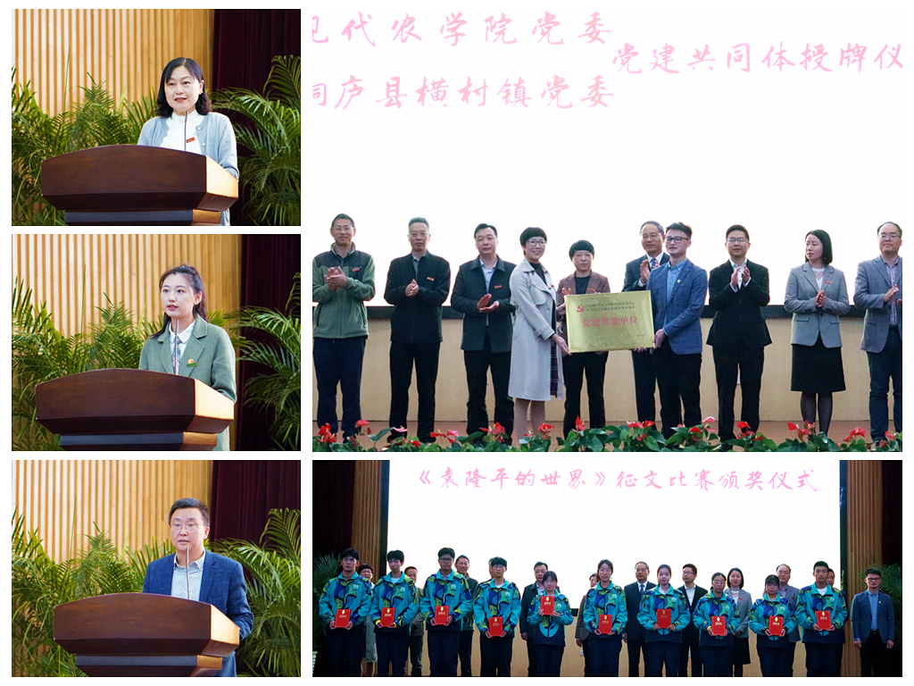 教师代表、学生代表、党建共建单位代表分别作了发言。活动还举行了现代农学院党委与桐庐县横村镇党委“红种子·党建共同体”授牌仪式、《袁隆平的世界》征文大赛颁奖仪式。