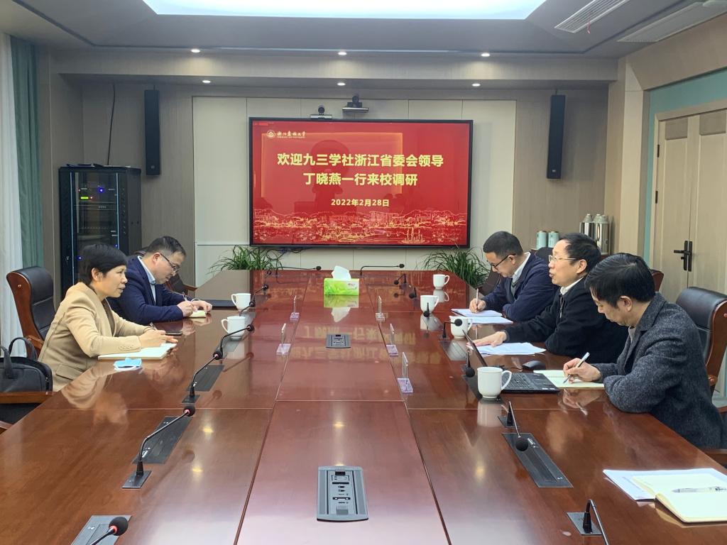 2月28日,九三学社浙江省委会领导、机关负责人丁晓燕一行来校调研,校党委副书记冯尚申、九三学社浙江省委会组织部部长骆天出席座谈会。
