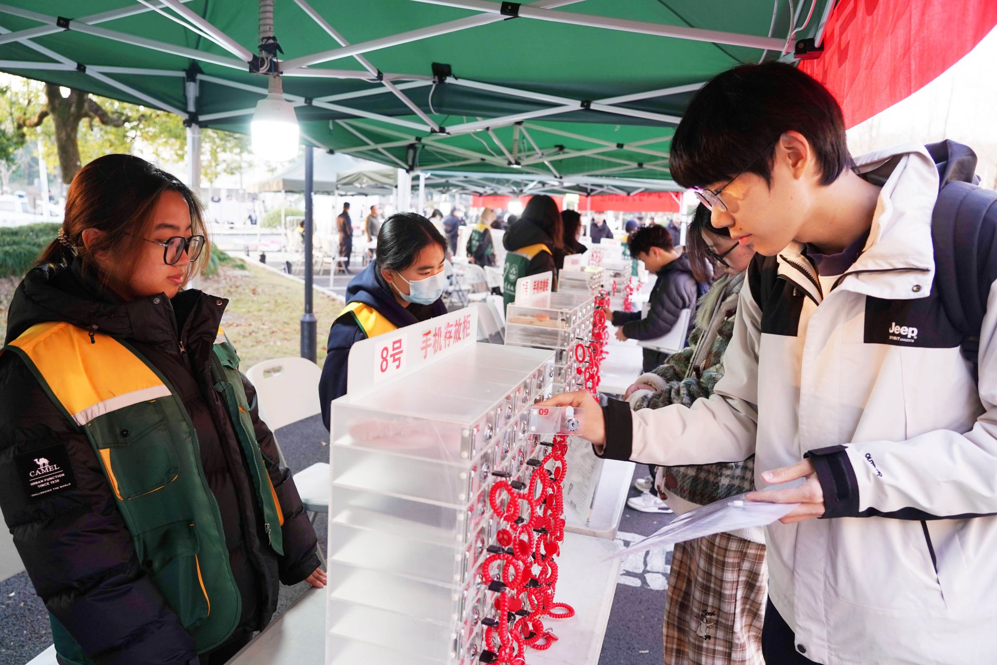 美女的隐藏部位是什么图片考点,考生将手机寄存在考场外的手机存放柜。