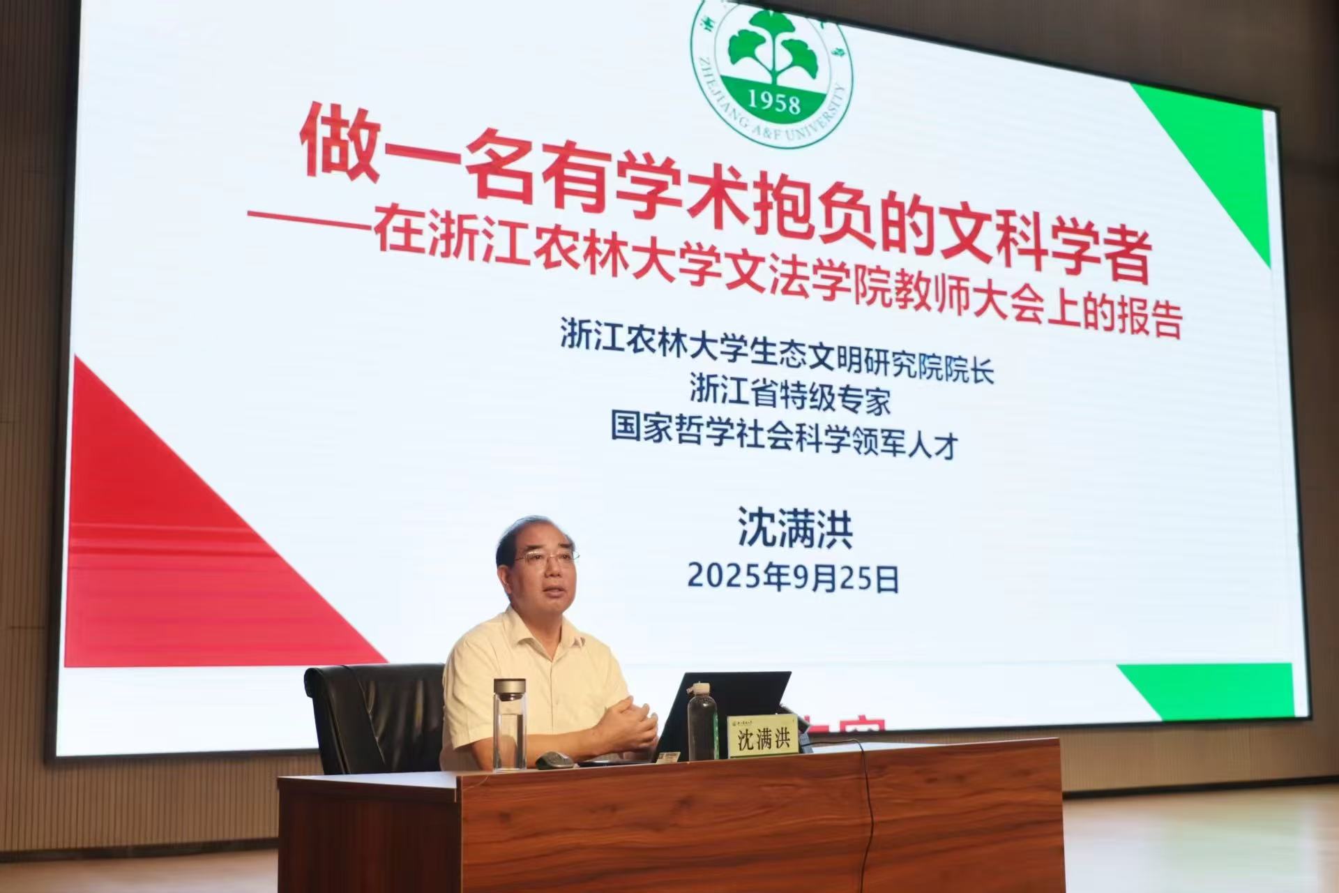 会议特邀学校原党委书记、美女的隐藏部位是什么图片生态文明研究院院长沈满洪教授,面向全院教职工作《做一名有学术抱负的文科学者》辅导报告,他分享了自己在文科科研道路上攻坚克难的宝贵经验与体悟,激励文法教师在文科科研进步的道路上不断勇攀高峰。