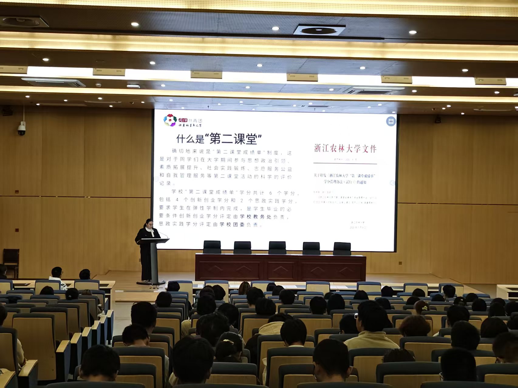 10月29日晚,园艺学院举行2025级新生“第二课堂”与志愿实践宣讲活动。讲座由校青协负责人、院志愿实践部负责人孙俊杰、何肖慧主讲,2025级全体本科新生及辅导员参加讲座。