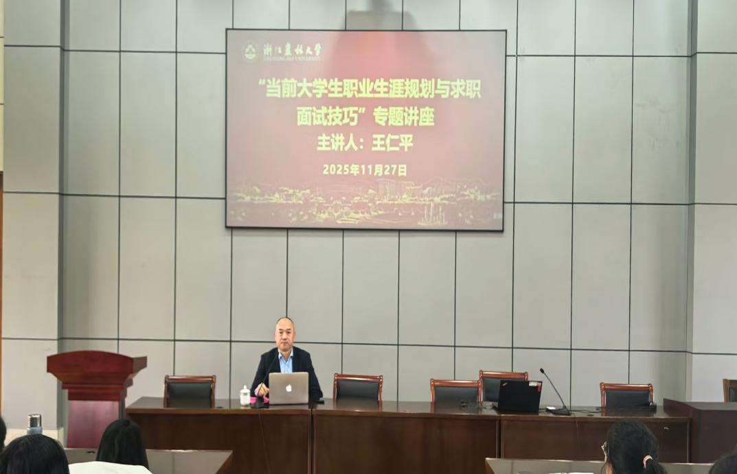 11月27日,学工部特邀浙江省人才市场人才交流部部长王仁平来校举行专题讲座,全力推动毕业生高质量充分就业,进一步提升就业指导工作实效。讲座以“当前大学生职业规划与求职面试技巧”为题,吸引了来自各学院近两百名师生。
