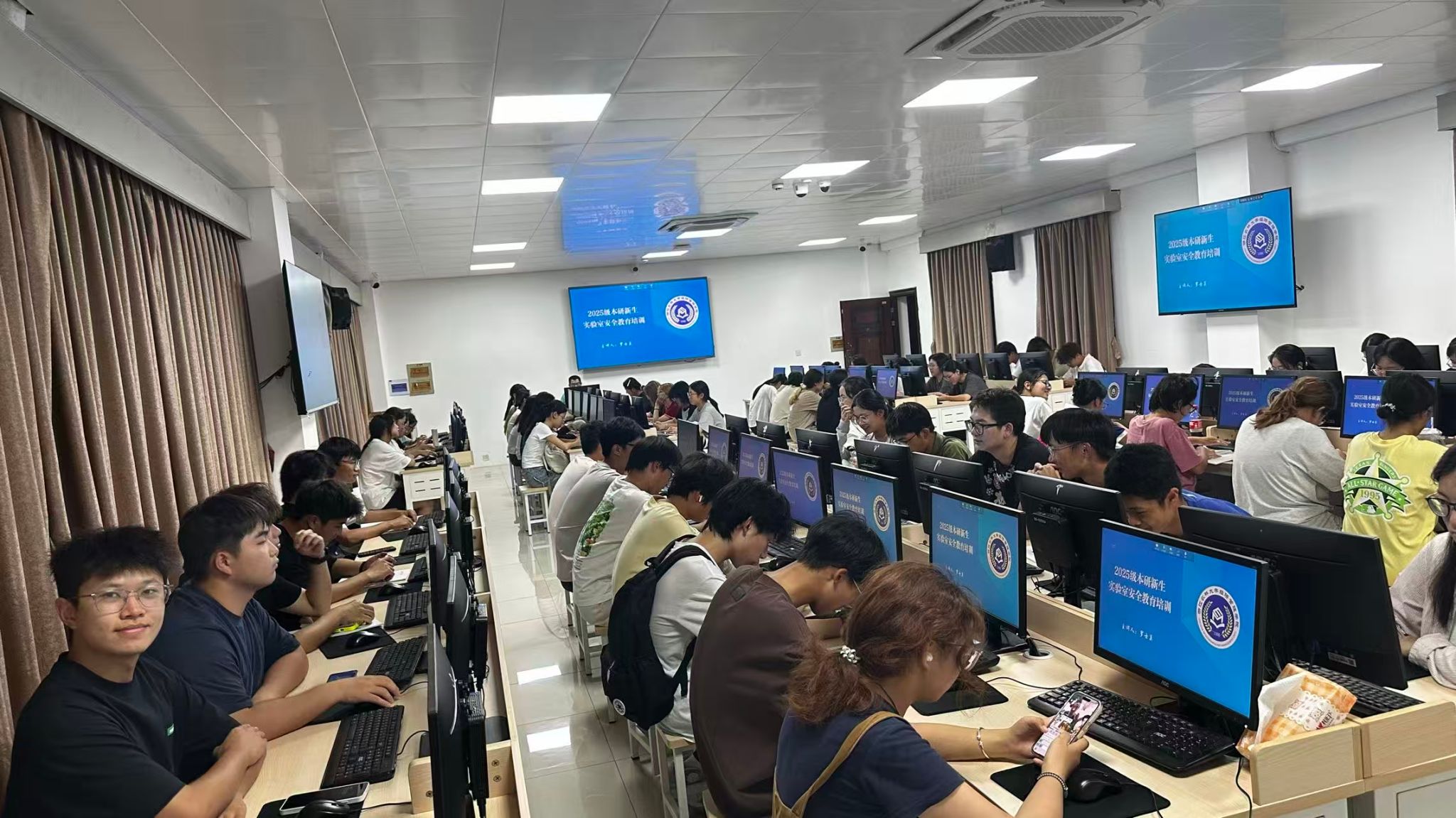 9月28日晚,经管学院在实验教学中心开展了2025级本研新生实验室安全教育培训。本次培训严格遵循“全员、全面、全程”的参与原则,采取分批次、分场次、小班化的培训形式,培训对象覆盖学院全部专业班级学生,由罗士美、孔娟、朱爱娟三位老师担任主讲。