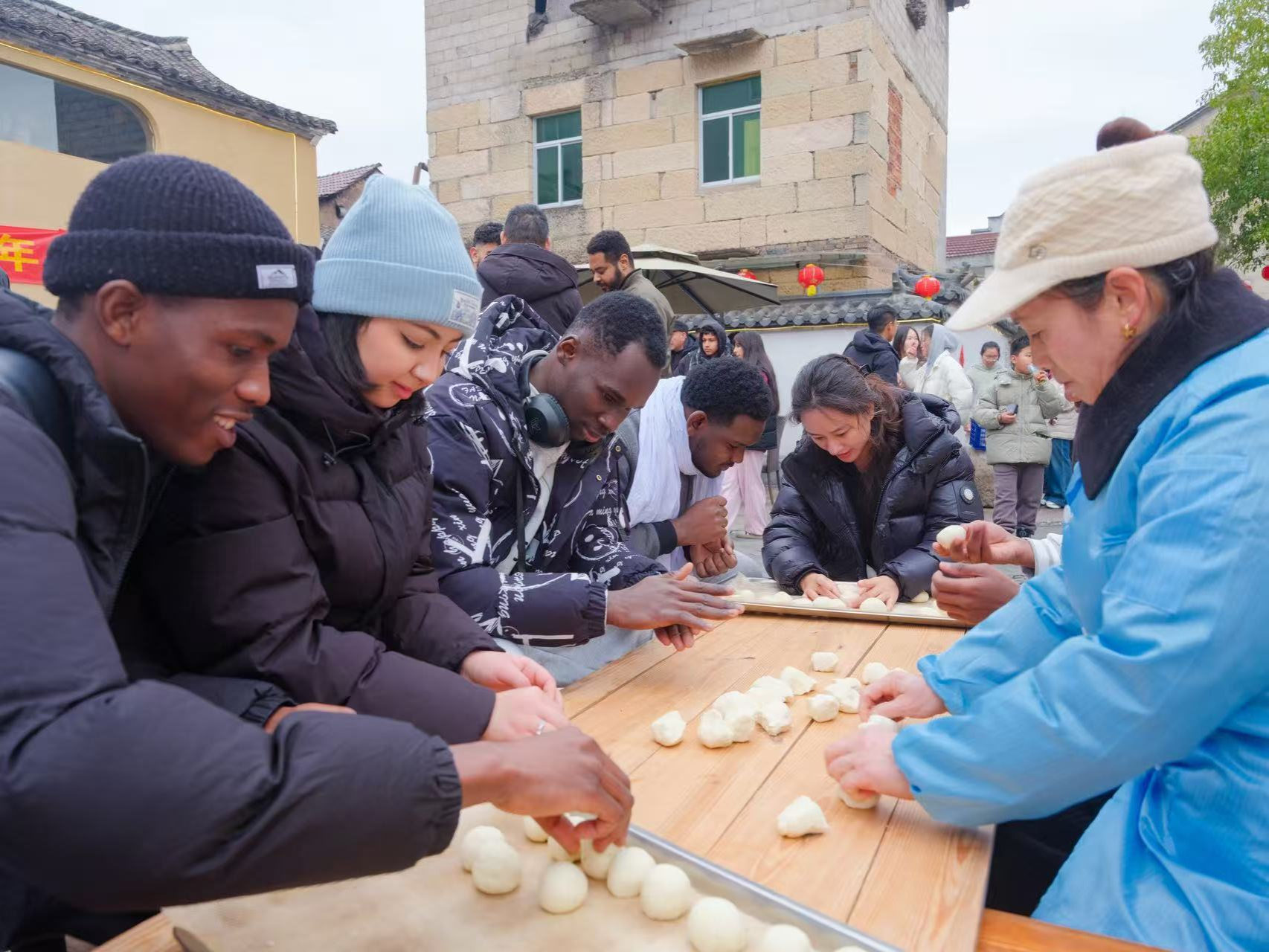 近日,国教学院组织百余名国际学生走进丽水市缙云县大源镇稠门村,参加缙云县馒头制作技能竞赛暨“百名留学生到大源过大年”活动。