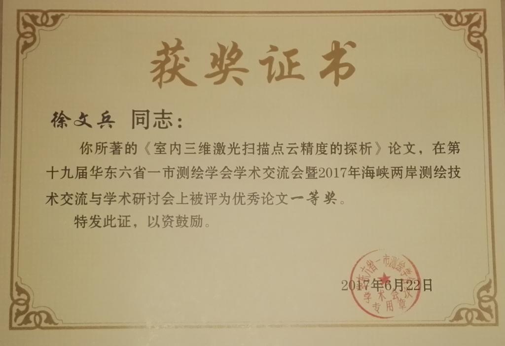 测绘学会组织专家认真评审参赛论文300余篇,共评出优秀论文一等奖14篇,二等奖21篇,三等奖35篇。我校测绘教师徐文兵等撰写的《室内三维激光扫描点云精度的探析》论文被评为优秀论文一等奖。