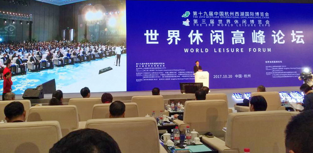 10月20日-21日,世界休闲高峰论坛在杭州国际博览中心(以下简称“国博中心”)召开。来自美国、西班牙、加拿大等多个国家的世界休闲组织理事,国内顶尖休闲类专家、各城市代表等参加会议。我校园林学院李健、陈美爱等老师应邀参加并作主题发言。