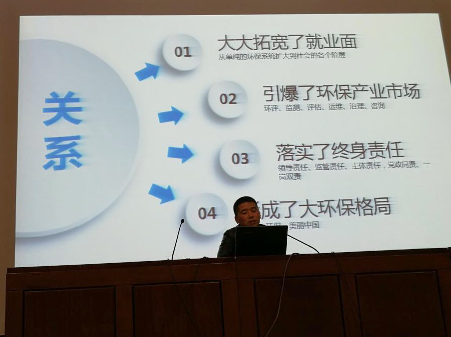钱卫敏以中央环保督查工作为切入点,介绍了中央环保督查的背景、目的,阐述了我国环保工作的严峻形式和中央对环保的重视程度,展示了先进的现代化环境监测技术和环保专业的光明前景,希望同学们认真学习专业理论知识,苦练专业技能,不负大学的美好时光,为环保事业做出贡献!