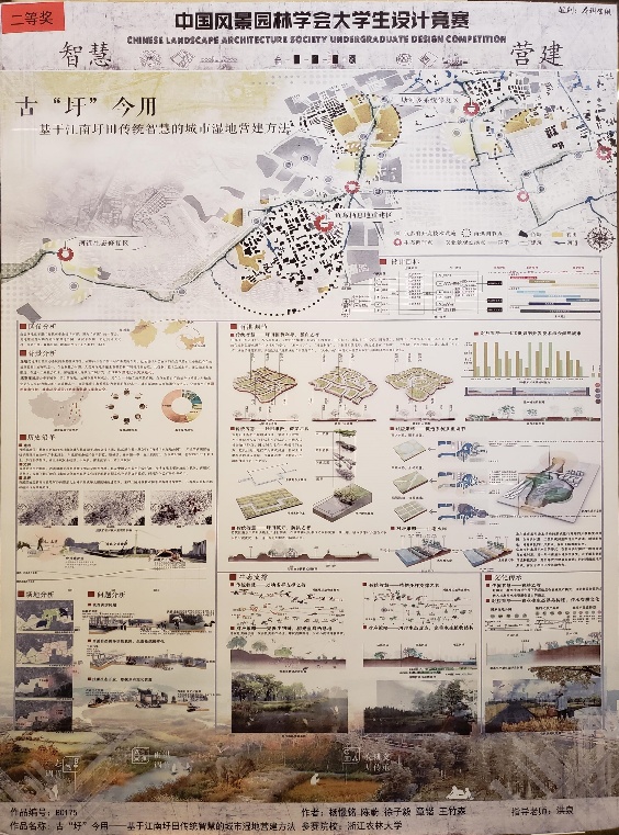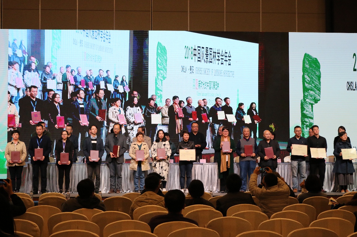 本次年会园林学院师生取得了较为突出的成绩:杨憬铭、陈蔚、徐子毅、章锴、王竹森(指导教师:洪泉)的作品《古“圩”今用——基于江南圩田传统智慧的城市湿地营建方法》荣获中国风景园林学会大学生竞赛本科生组二等奖; 郭婷婷、林守伟、郭瀚阳、黄胜孟、支逸箫(指导教师:李胜)的作品《蚂蚁“生”林-基于现代共享公益与传统台田技术的岱海技术生态重建策略》获得研究生组三等奖。园林学院教师徐文辉、洪泉各获得2018中国风景园林学会年会优秀论文佳作奖。