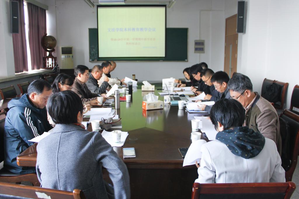 近日,文法学院在实验大楼612召开本科教育教学会议暨期中教学检查教师座谈会。院长王长金、院党总支书记朱红东、学科专业负责人、专业负责人、院教学督导等参加了会议。会议由王长金主持。