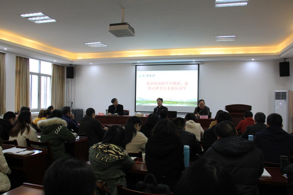 12月6日,马克思主义学院邀请国家“万人计划”哲学社会科学领军人才、浙江工商大学马克思主义学院院长陈华兴教授,《浙江社会科学》杂志社社长、主编俞伯灵研究员来我院讲学,学院教师及研究生参加讲座。