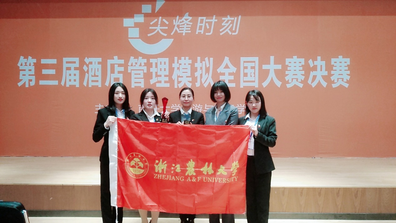 近日,第三届“尖烽时刻”酒店管理模拟全国大赛决赛在南开大学旅游与服务学院举行。我校旅游管理专业学生徐会、曹达理、孔钇婷、申彩云组成的RICH队在决赛中喜获一等奖。闪媛媛老师获优秀指导教师奖。