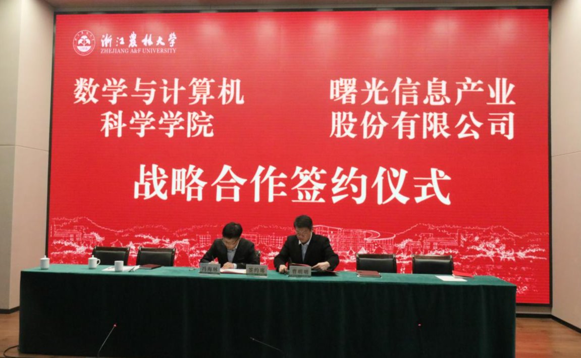 数计学院与中科曙光具有良好的合作基础,在人才培养、科学研究和产业发展等方面资源互补。经双方友好协商,本次双方签订战略合作协议,主要针对现代农林人工智能产业学院建设深度开展合作,建立“曙光”产业学院,就产学研合作协同育人、产业专家智库建设、实践实训基地建设、高水平科研合作、产业人才培训基地、科研信息化项目支持、生态合作资源支持等方面开展全方位合作,实现院企共同发展。
