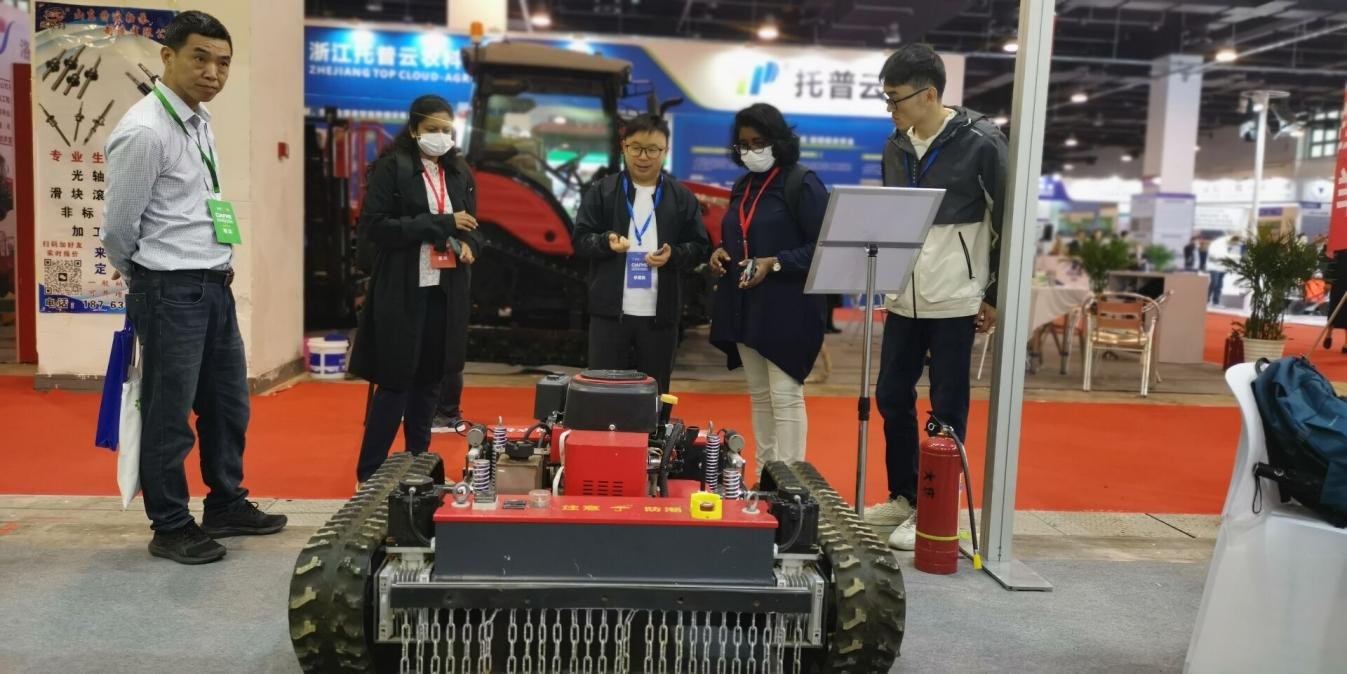 展会期间浙江省科协党组成员、副主席武传宇教授、浙江省农业机械学会理事长杨震宇总经理、浙江理工大学俞高红教授、石河子大学坎杂教授、青岛农业大学尚书旗教授、山东理工大学耿端阳教授及Dares kittiyopas(泰国农业工程学会主席)等专家学者饶有兴致地来到我校展台与参展师生深入交流,充分肯定了我校经济林全程机械化、坚果/浆果机械化采收、农机电动化无人化等农林机装备研发的技术水平及成效,参展农机也得到了农机合作社、新型农业经营主体、农机推广部门及消费者的高度关注与好评。