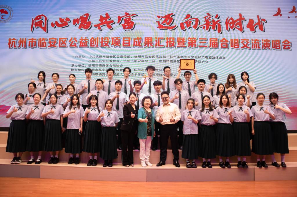 5月19日下午,我校大学生艺术团合唱团受邀参加临安区第三届合唱交流演唱会。活动在临安区职教中心举行,浙江省合唱协会名誉理事长谭丽娟、理事长严圣明光临指导并担任点评专家,临安区委宣传部、文联等领导出席。