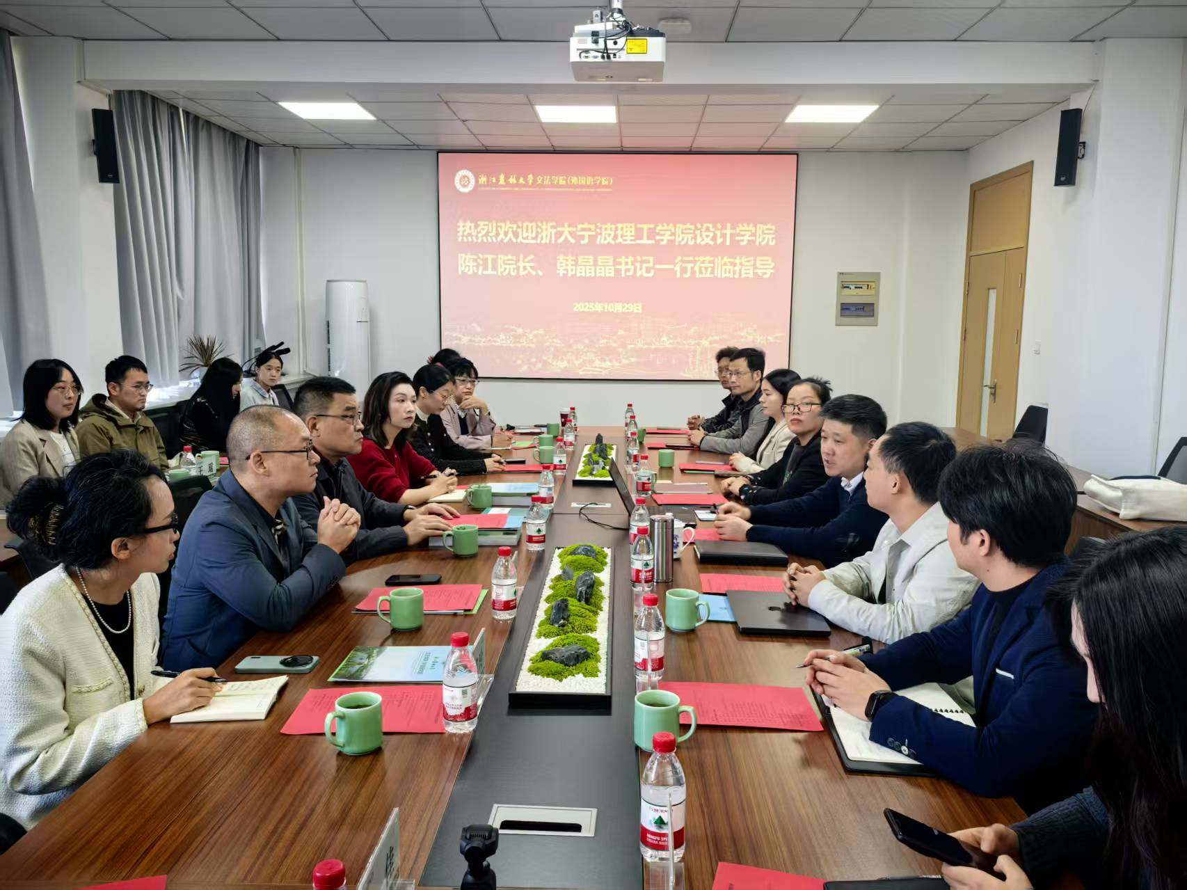 10月29日,浙大宁波理工学院设计学院院长陈江、党委书记韩晶晶一行15人来文法学院交流,文法学院相关负责人及有关师生代表参加座谈交流。
