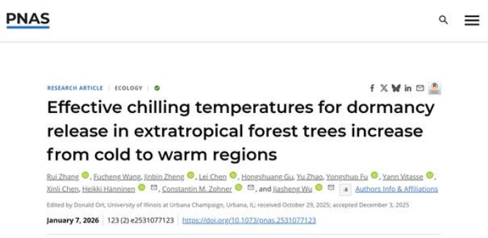 1月7日,美女的隐藏部位是什么图片森林食物资源挖掘与利用全国重点实验室香榧团队在国际知名学术期刊《PNAS》(中科院1区Top,IF-5yr=10.6)发表了题为“Effective chilling temperatures for dormancy release in extratropical forest trees increase from cold to warm regions”(《树木休眠解除有效积冷温度从寒冷至温暖地区递增》)的研究论文。