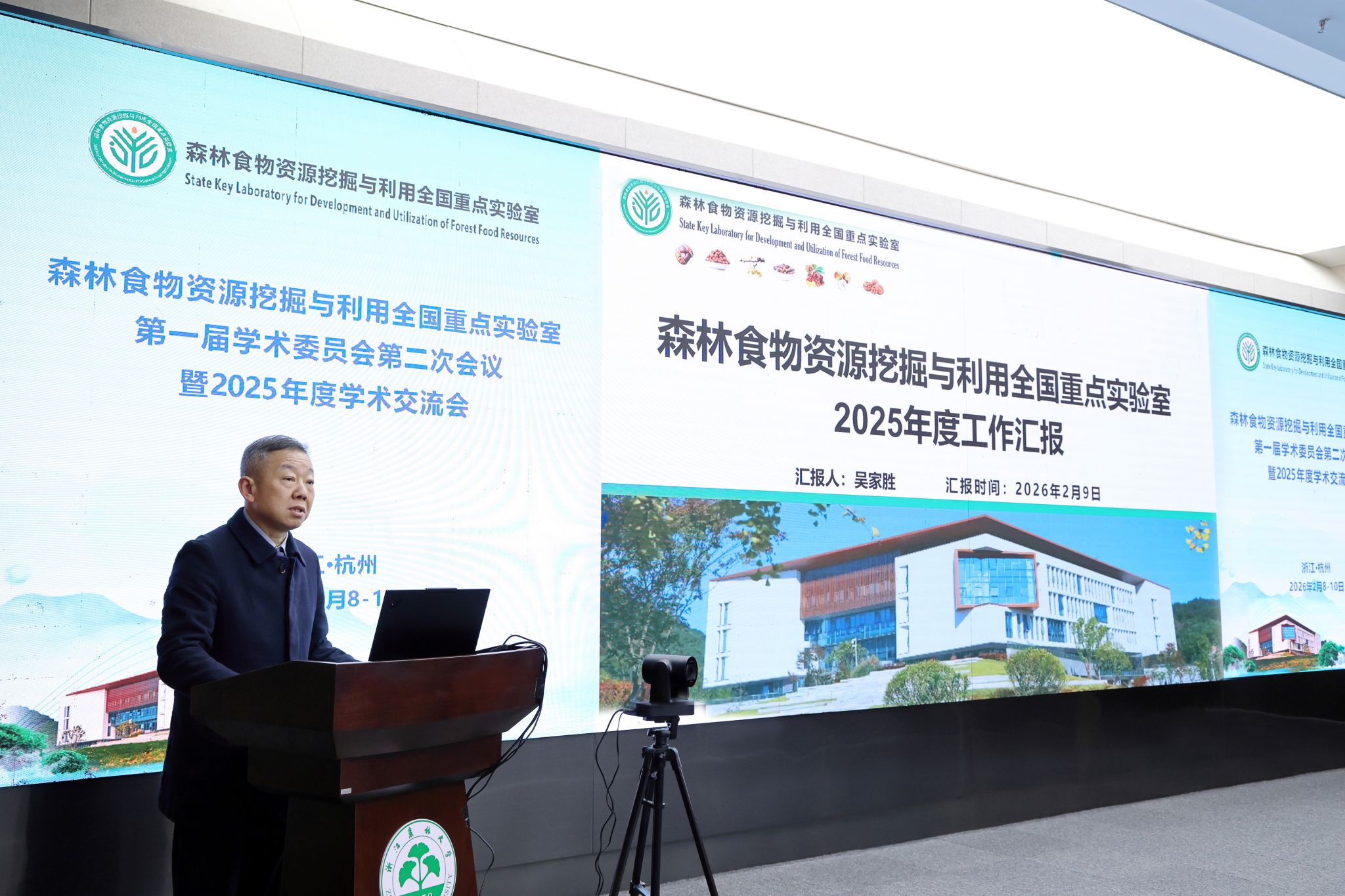 实验室常务副主任吴家胜教授作年度工作汇报。2025年,森林食物资源挖掘与利用全国重点实验室通过“多学科交叉、多主体协同、产学研融合”的组织模式,支撑“资源挖掘—机制解析—功能构建—产品转化”全链条创新,各项工作成效显著。下一步,实验室将坚持目标导向与问题驱动,重点围绕“凝聚合力、补齐短板、推动转化”协同攻坚,全力推动实验室建设迈向更高水平。